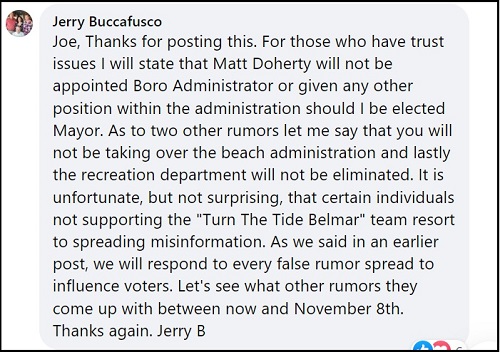 Most importantly, he’s smart and experienced, he’s humble and not vindictive, and is retired so he’ll act more than just a figurehead as our current mayor does. Don’t let Jerry’s North Jersey accent fool you. He won’t let Jersey City politics into Belmar or cronyism remain in The Borough.