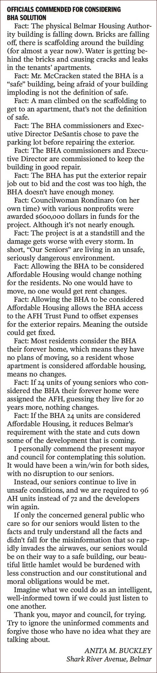 Yes, there SHOULD be many houses and condos in Belmar that helped meet the affordable housing demands. Unfortunately, there aren’t. You can thank some previous mayors for that fact.