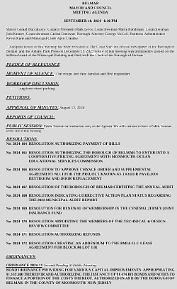 Tuesday Night’s Agenda for September 10, 2024 Council Meeting Posted on September 10, 2024 by Editor Resolutions Ordinance 2024-17 Second Reading Ordinance 2024-18 Second Reading Ordinance 2024-19 First Reading Ordinance 2024-20 First Reading