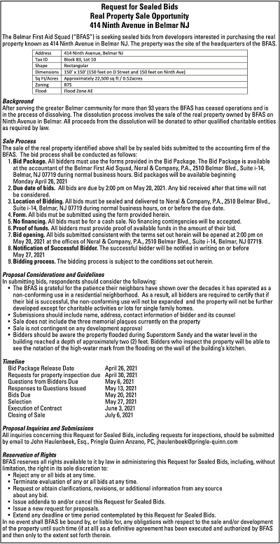 The remaining assets of the BFAS are the fruits of 93 years of commitment and hard work by its volunteers. The BFAS has earned the right to decide how the proceeds of those assets should be distributed to best serve Belmar’s residents, and carry on its good name.