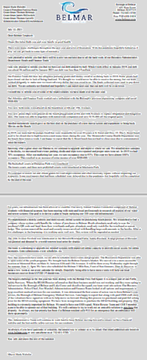 Letter from the Mayor that arrived with the estimated tax bill. Posted on July 20, 2021July 20, 2021 by Editor Letter is dated July 12, 2021 Click the Image to read the Letter