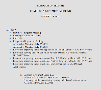 The most vocal advocate for the condos is an Edelman that visits Belmar for 4-5 weeks each summer. She actually lives in Colorado according to knowledgeable sources.