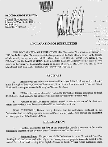 Belmar Plaza Parking Lot 2012 Declaration of Restriction Document