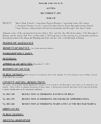 Monday Morning’s Agenda for December 27, 2021 Council Meeting Posted on December 26, 2021 by Editor Resolutions