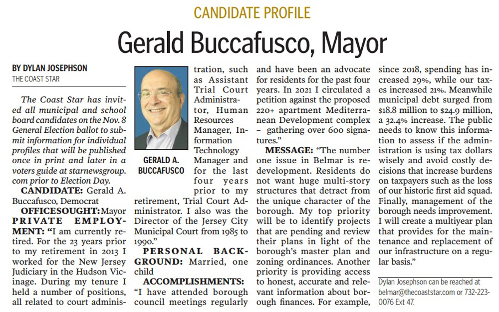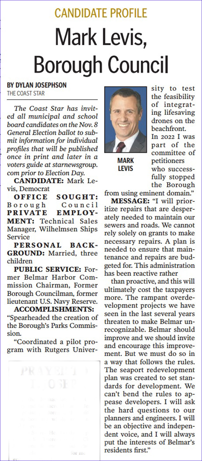 2. I am pulling for this crew. We need a change in Belmar leadership. Unfortunately this admin has made some questionable choices.