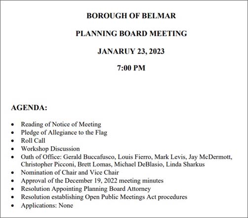 Belmar Planning Board Meeting of Monday, January 23, 2023 Posted on January 23, 2023January 23, 2023 by Editor Oath of Office for new and returning members