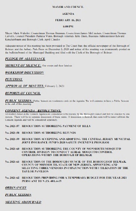 Tuesday Night’s Agenda for February 16, 2021 Council Meeting Posted on February 14, 2021March 24, 2021 by Editor Resolutions Here