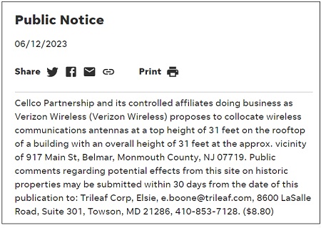 What I do not understand is that 917 Main Street, Block 96, Lot 3 is in the Seaport Redevelopment Plan, would this not be something required to be presented to Mayor and Council and the technical review board, and the whole process? The problem that is being created here is that a cell tower going on an old building (1900 according to the property tax card) is that Verizon is going to pay the property owner a big amount of money in rent and nothing will ever change with the building and it will become a situation like with the Mayfair where they are making so much money off of the communication towers they don’t need to do anything to keep up their building it falls into disrepair and the owner likely doesn’t live in Belmar just has all the checks sent to their po box. At the very least I would think that being in the SRD Zone the Mayor and Council and reviewing boards should be given the plans and specs for what this tower will look like.