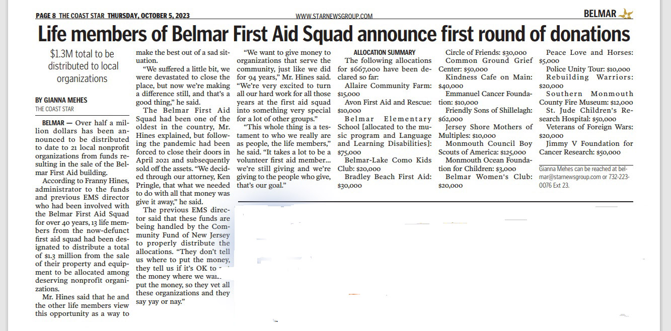 And this recent article in the Coast Star explains about the donations