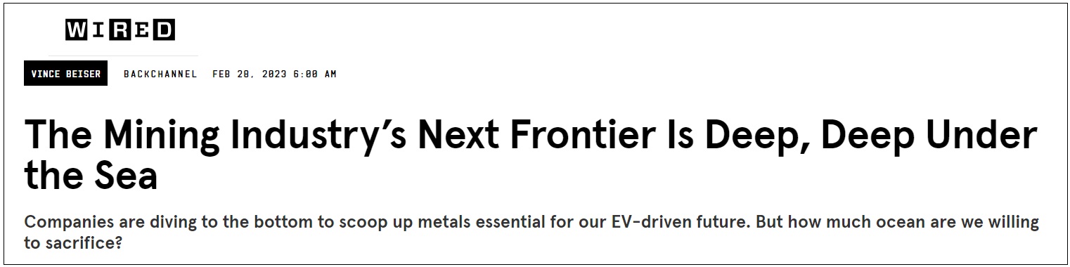 The beginning of this article has excellent descriptions of how mining the ocean floor works. And in the article, about the CEO of the company “He has just flown in from London for a big mining conference. For years, he’s been traveling the world to talk up deep-sea mining to investors and government officials”. Imagine his carbon footprint.