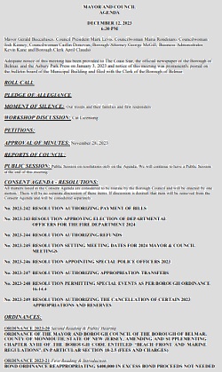 Tuesday Night’s Agenda for December 12, 2023 Council Meeting Posted on December 11, 2023 by Editor Revised Agenda Resolutions Additional Resolutions Ordinance 2023-20 Second Reading Ordinance 2023-21 First Reading