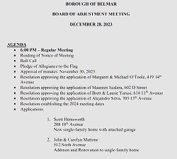Belmar Zoning Board – December 28, 2023 Posted on December 27, 2023December 29, 2023 by Editor Both applications approved.
