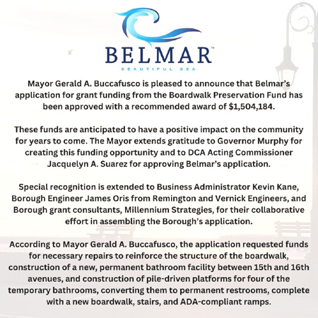 Wait one gall darned minuto. What amount(s) will Belmar taxpayers have to foot in terms of required matching “Grants” and is there a time limit within which job(s) should be completed?