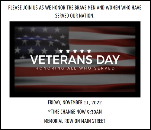 bookmark_borderOn Friday, November 11, 2022 – Veteran’s Day Service Posted on November 9, 2022 by Editor