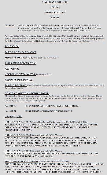 Ordinances – No. 2022-03 at 1200 Main is the Belmar Auto Property