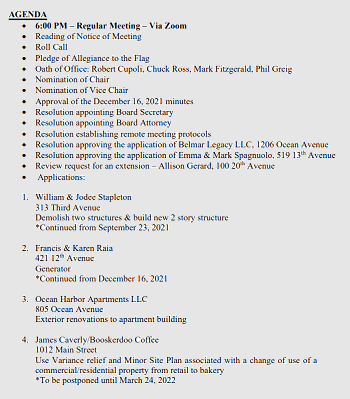 bookmark_borderZoning Board Agenda for Thursday, January 27, 2022