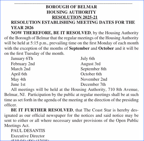 bookmark_borderBelmar Housing Authority – December 1, 2025